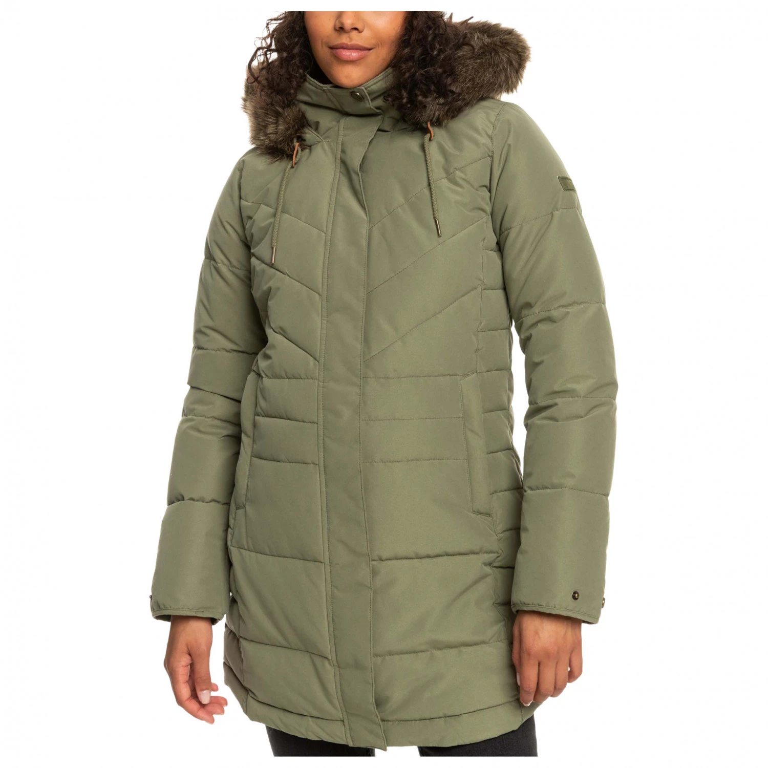 The tailored fit with its elongated and rounded hem offer extra warmth. Despite having a snug cut, it won’t restrict your freedom of movement. The cut, design and details such as the spacious hood with the warm synthetic fur trim all work perfectly in the Women’s Ellie Coat from Roxy!